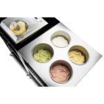 Описание Элегантная мобильная тележка Nemox GELATO 5K T — MOBILE для приготовления итальянского джелато, классического мороженого, сорбета. Особенности Выполнена из нержавеющей стали и отделана стильными материалами из MDF. Снабжена 4-мя колесами с тормозами. Имеет большой выдвижной ящик для хранения различных аксессуаров (ложки, креманки, расходные материалы) и ингредиентов для приготовления мороженого. Все необходимое расположено под рукой, что упрощаем процесс приготовления мороженого и обслуживания посетителей. Сложное программное обеспечение автоматически управляет всеми производственными процессами, а также функцией хранения готового продукта. Идеально подходит для производства и реализации мороженого в «малых» форматах. Характеристики Средний цикл приготовления 12-15 мин Система охлаждения: воздушное Газ R404 Функция хранения: 4 автоматические программы Электронная система контроля двигателя Двигатель индукционный с термостатом Термостаты на компрессоре и двигателе Редуктор 70 rpm Комплектация Лопатка для мороженого: 1 шт Набор съемных насадок для лопастей: 1 комплекте