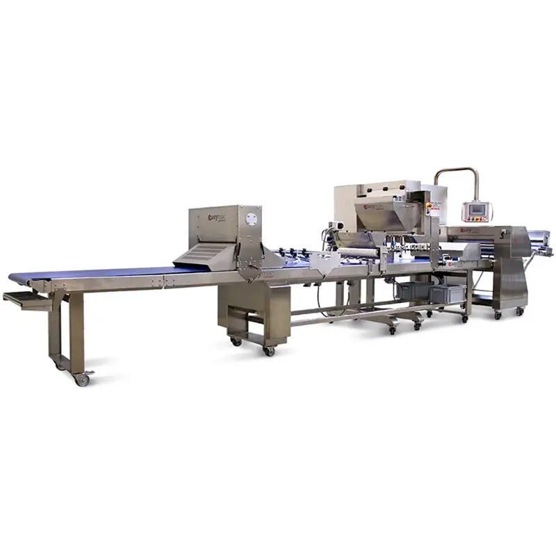 Оборудование для формования тестового полотна и точной раскатки до нужной толщины. Обеспечивает стабильную подачу теста на формовочную линию.