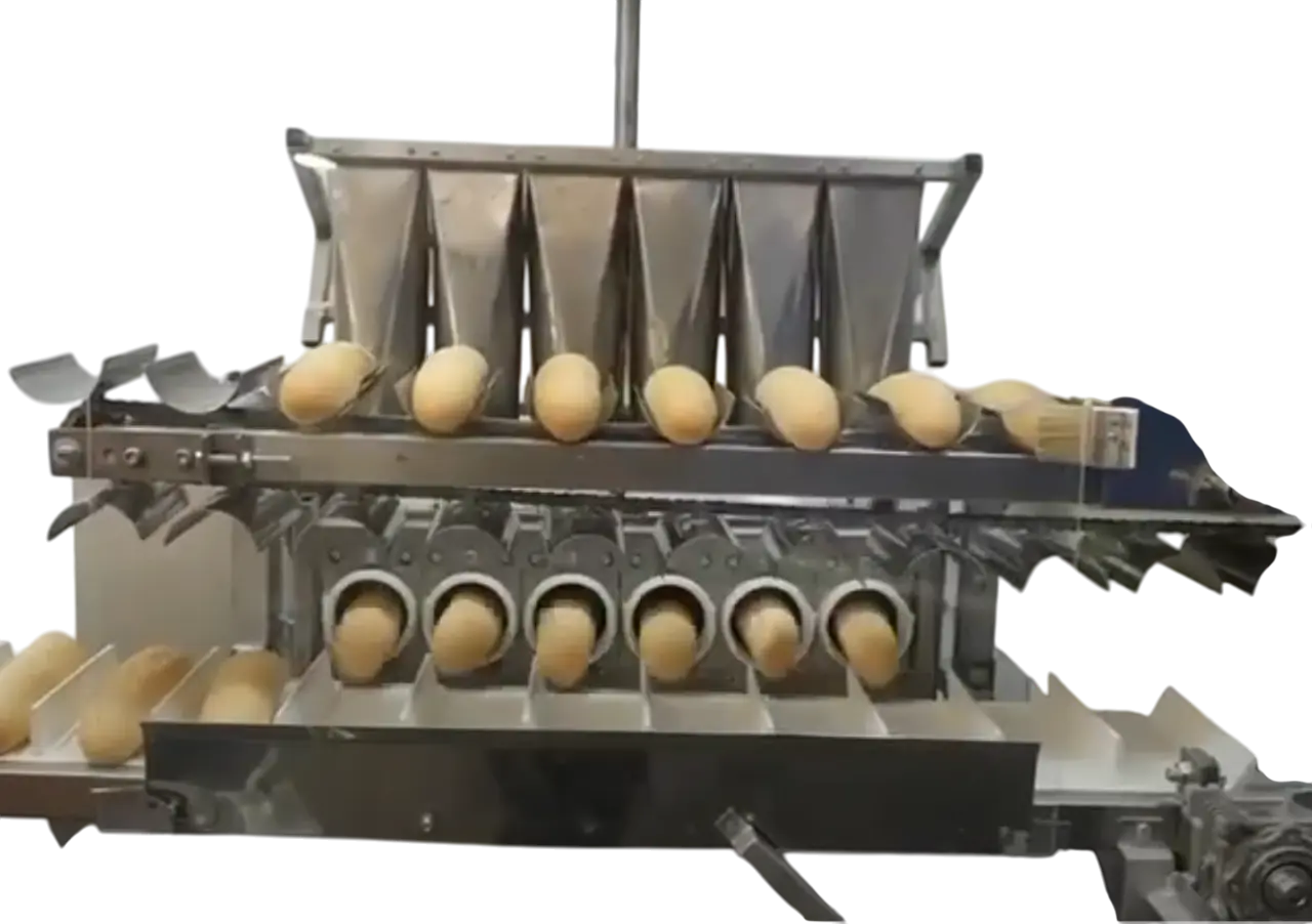 Специализированное оборудование для точного и аккуратного формирования отверстий в булочках для хот-догов. Линия гарантирует идеальную геометрию, сохраняет целостность изделия и значительно увеличивает скорость подготовки продукции к фасовке.