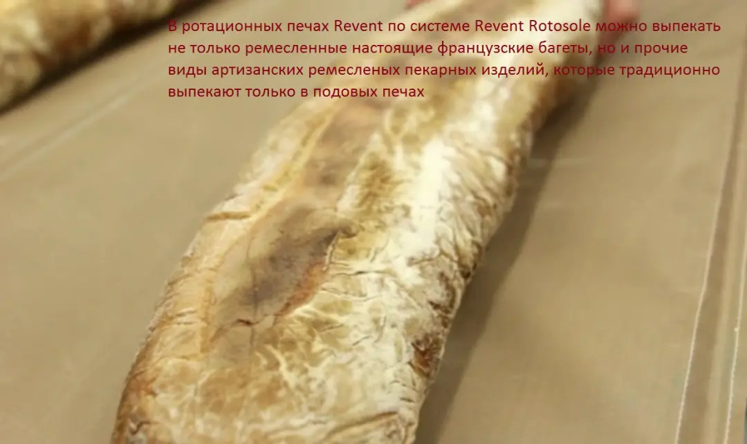 Revent Rotosole: революция в хлебопечении! Настоящие французские багеты с хрустящей корочкой без следов от сетки — теперь и в ротационной печи. Идеальное качество подового хлеба с удвоенной производительностью. Экономьте энергию, время и пространство без компромиссов в качестве. Revent — искусство perfect выпечки!